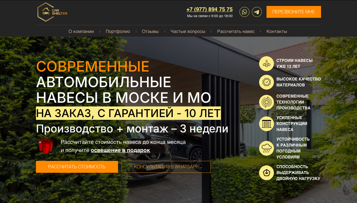 Сайт по навесам